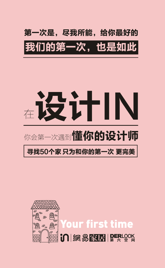以第一次为创意点,突出设计IN推出的严选设计师平台,用心为每一位业主服务的理念,不管你家是第几次装修,我们都会像第一次一样用心地为你的家设计,满足你心目中期待的家的模样。